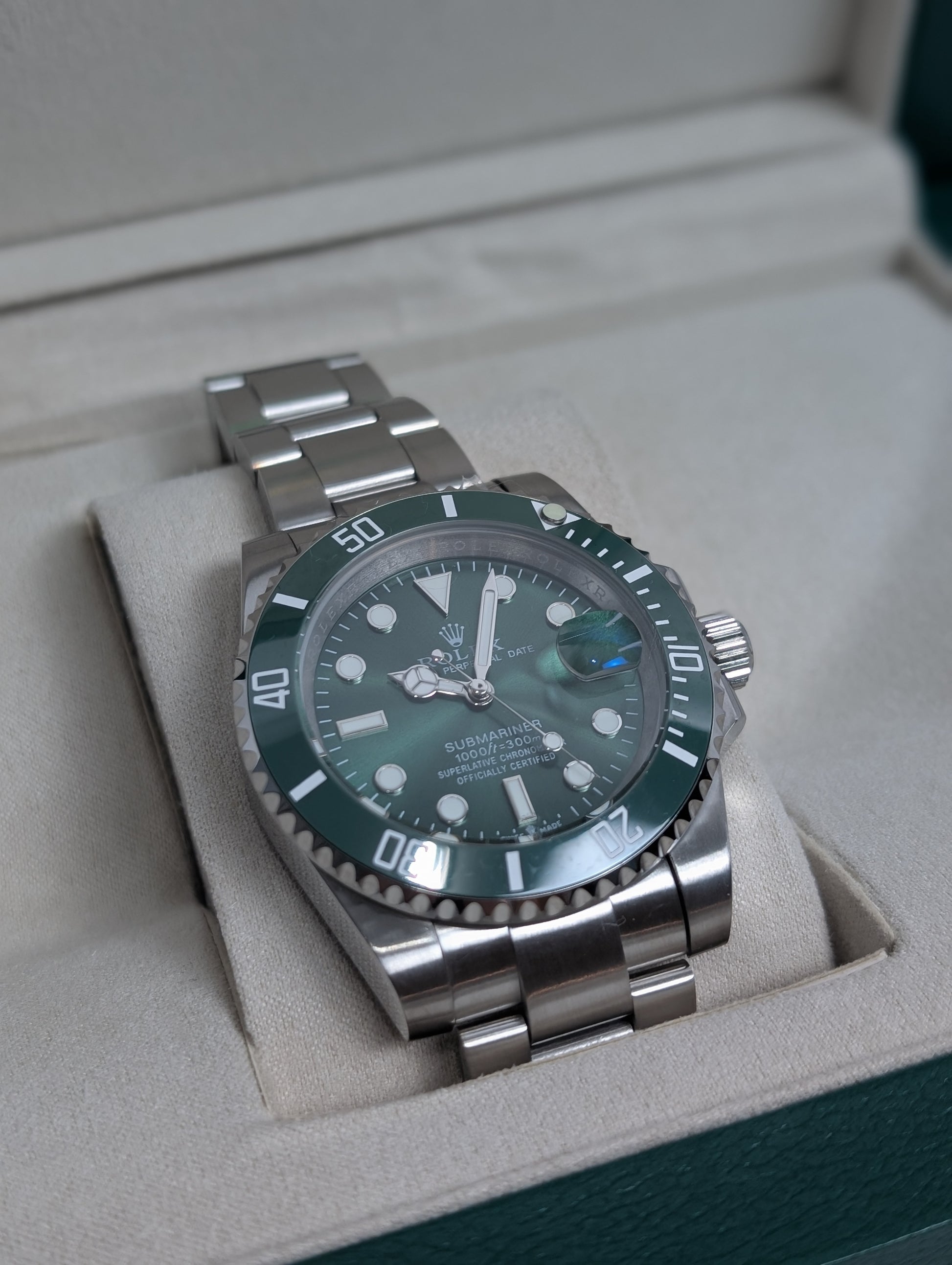 Make a statement with every second. This bold, dive-inspired watch features a striking emerald green dial and matching bezel, capturing the unmistakable energy of an iconic design. Built for durability and presence, its stainless steel case and rotating bezel offer both rugged performance and elevated style.
